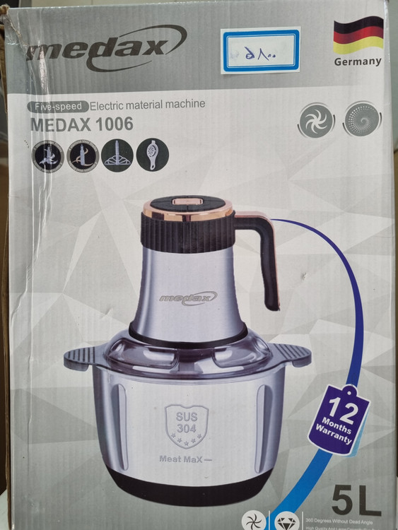 خردکن ۵ لیتری مداکس با ظرفیت بزرگ و موتور قدرتمند، انتخابی عالی برای خانوادهها و آشپزخانههای پرکاربرد است. این دستگاه با تیغههای استیل ضد زنگ، حجم زیادی از مواد غذایی را در چند ثانیه خرد میکند.